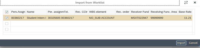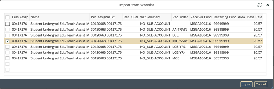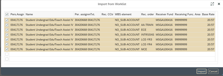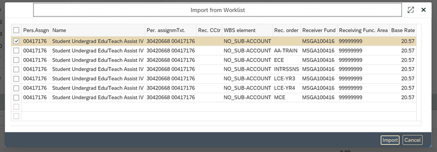 - Common Error 1: Student did not import Funding (Account) Information from Worklist