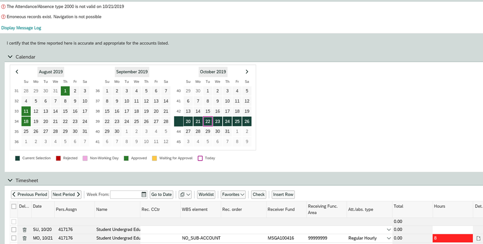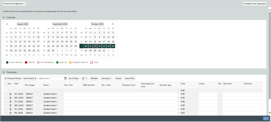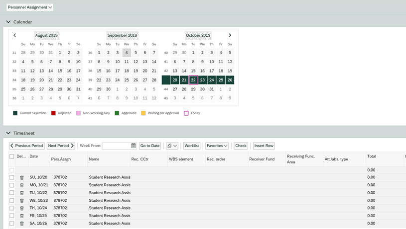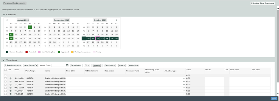 - Common Error 2: Student did not select the Correct Personnel Assignment from the Drop Down (time entry area grayed out)